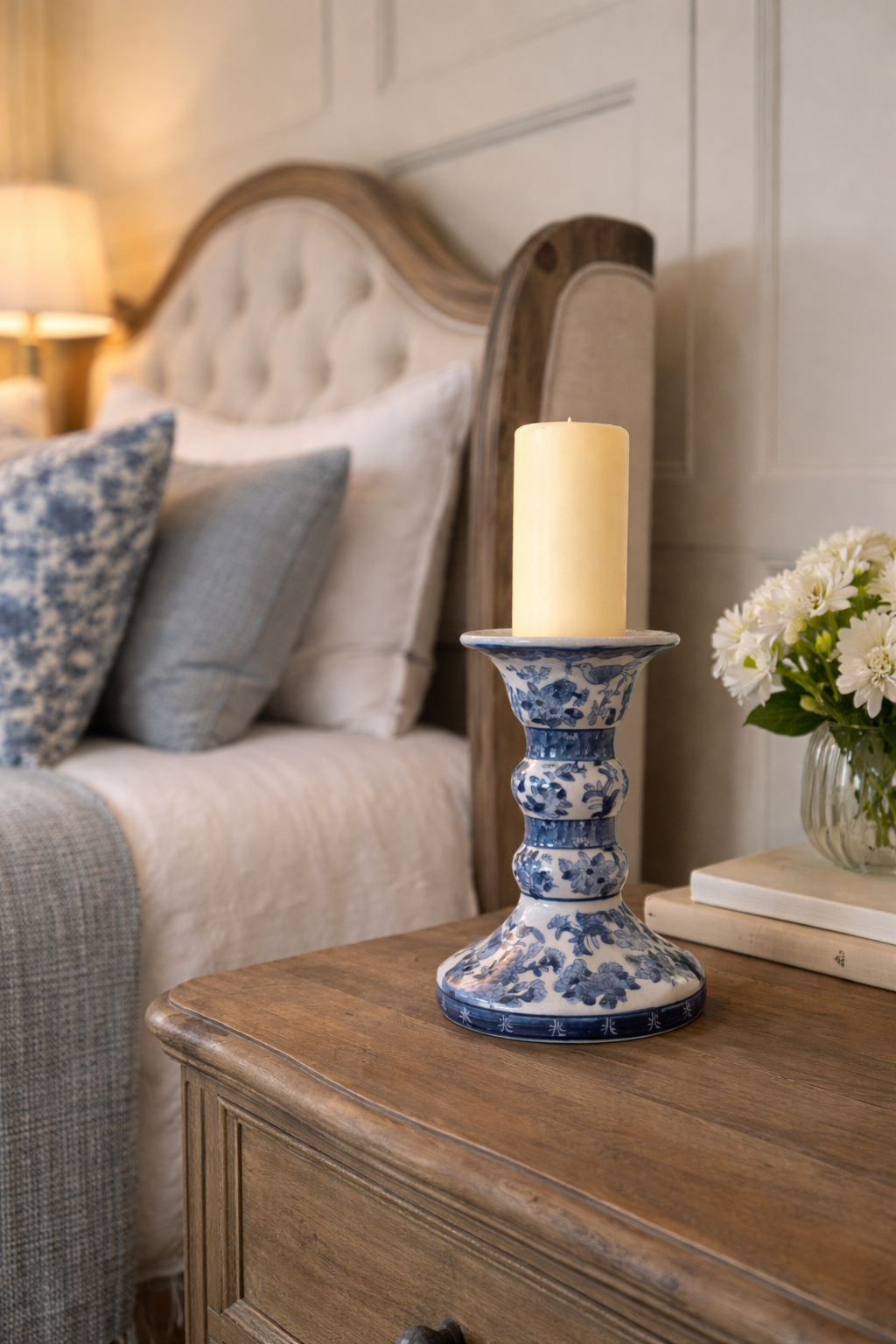 Large Antique Chinese Blue & White Porcelain Candlestick Late 19th–early 20th century