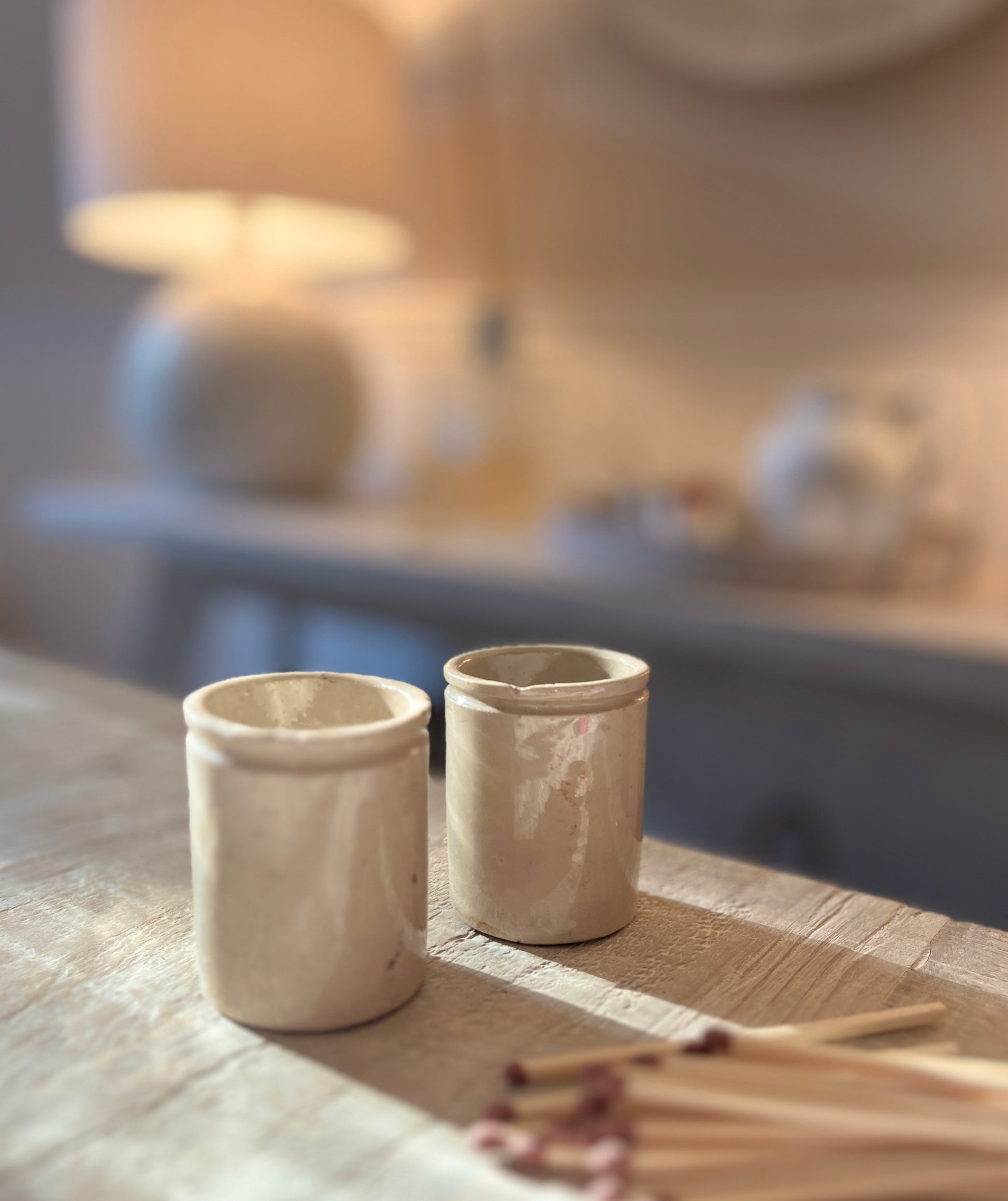 These antique glazed ink bottles have seen life. Rich with patina and use they have small chips and signs of age which is perfect for that authentic curated style.
