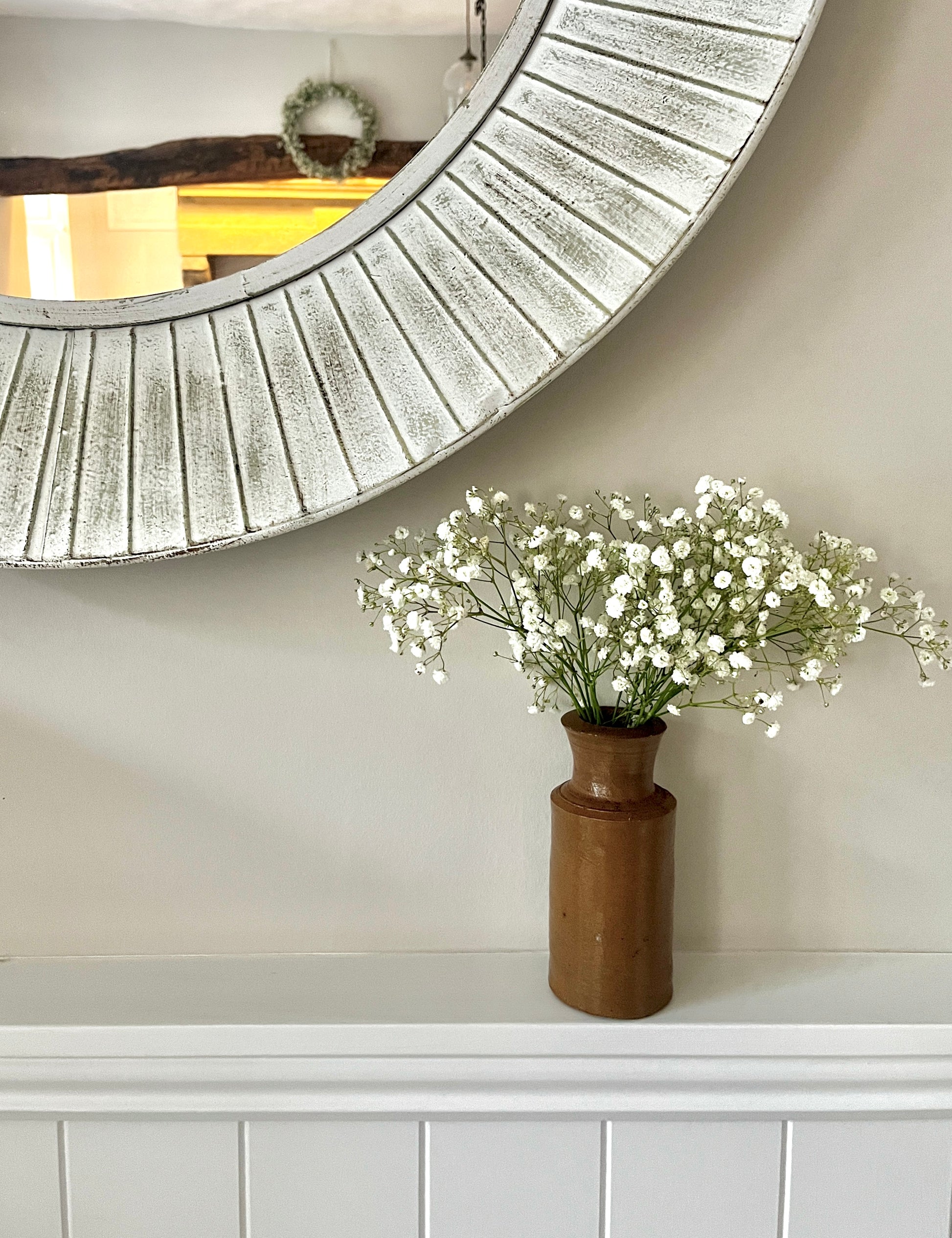 A beautiful heavy brown salt glaze bottle made in the 1800’s. These are fairly common but this one is in exceptional condition and right on trend.