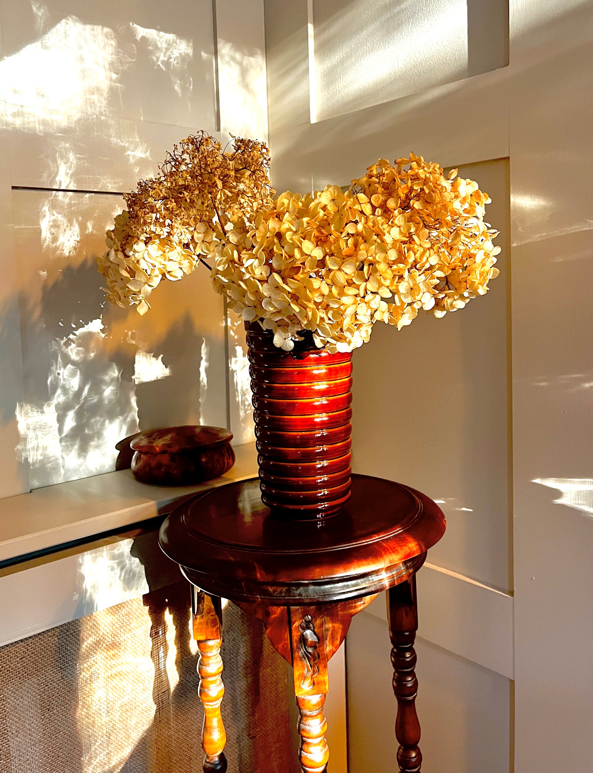 A tall Poole pottery brown glazed vase in mint condition. Perfect for shelf styling and autumnal displays.