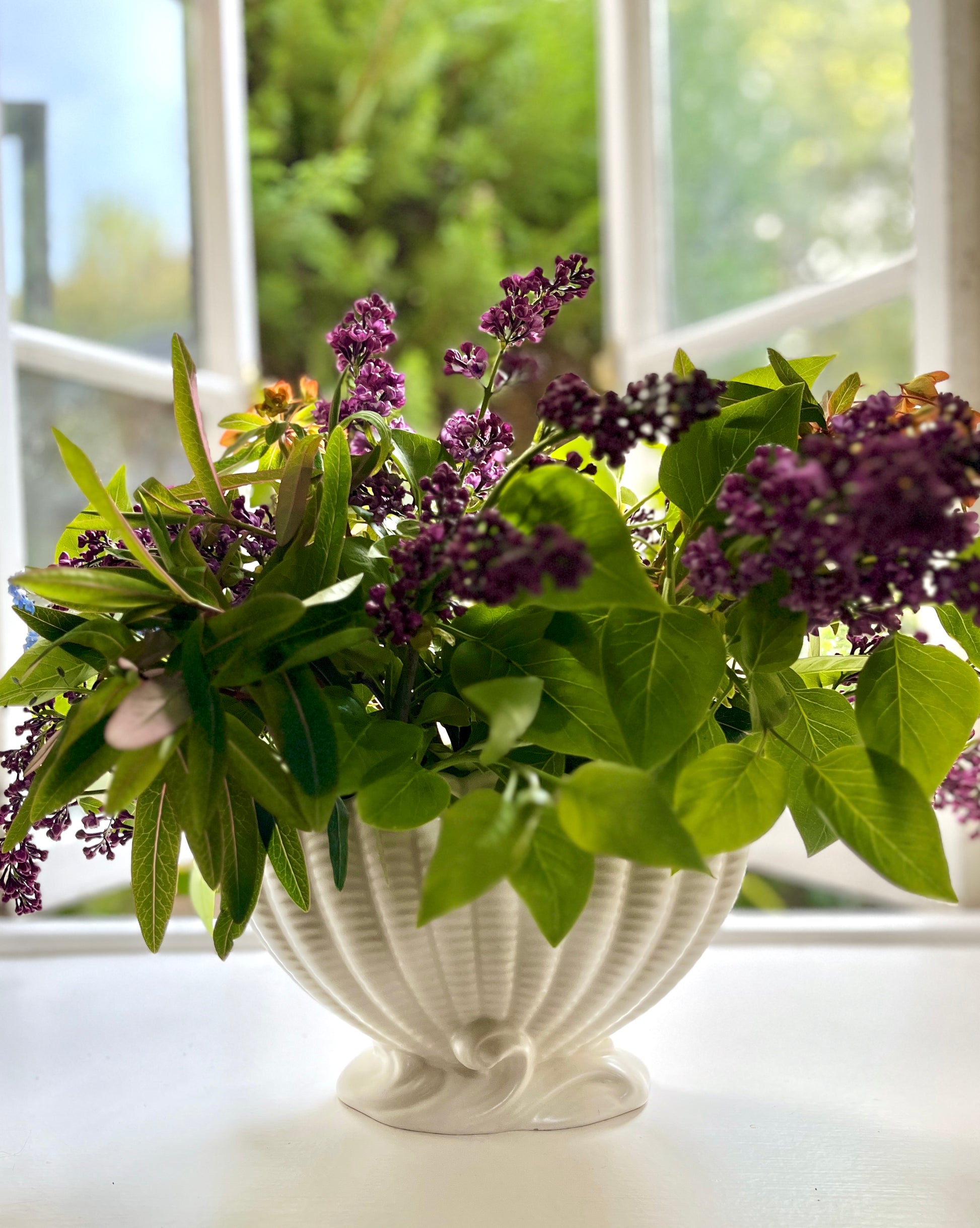 A pretty Vintage creamy white flower vase, perfect for your floral arrangements for the mantle.